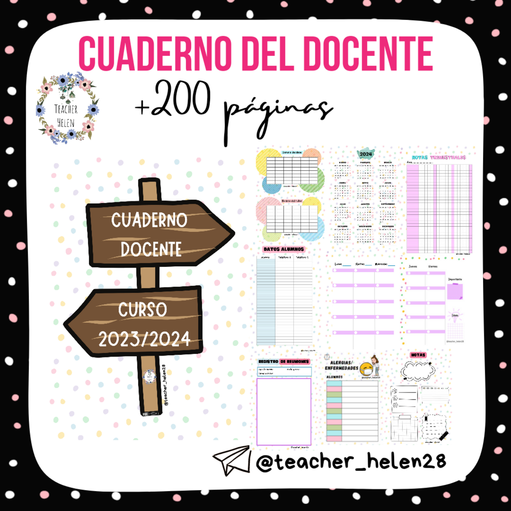 🌸¡Hola compis! 🥰 he creado con @canva, este cuaderno docente para el curso 2023/2024, con colores pasteles.